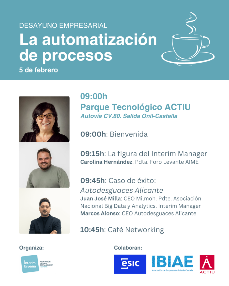 Desayuno Empresarial: «La Automatización de Procesos: Caso de Éxito «Autodesguaces Alicante». 5/Febrero. Parque Tecnológico ACTIU