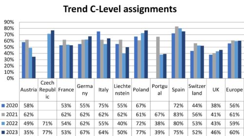 - Más del 60% de los interim managers europeos han desarrollado son misiones en Puestos de nivel C o superior, con un ligero aumento (+2%) respecto al año anterior.